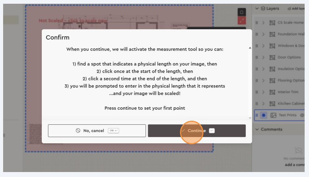If the plan already includes a scale (e.g., “¼ inch = 1 foot”), select it.