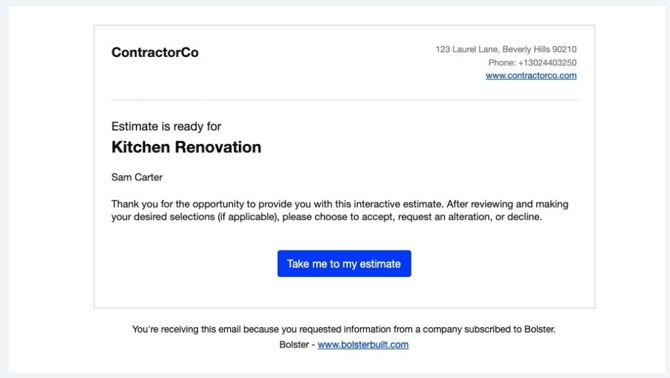 Once you send an estimate, your client will receive an email and SMS notification with a link to view the proposal.