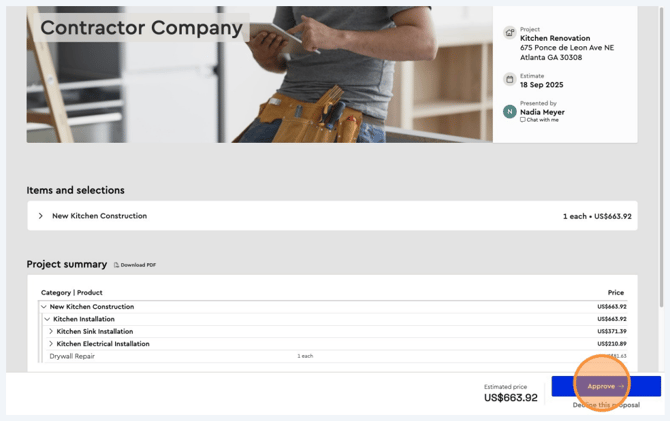 The client can open the proposal and review the details you’ve included. They will have the option to either approve or decline the proposal.