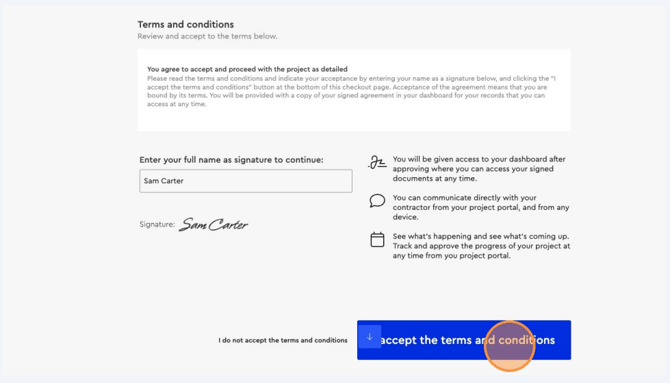 The client will be able to review the project’s payment terms and the proposal’s terms & conditions.