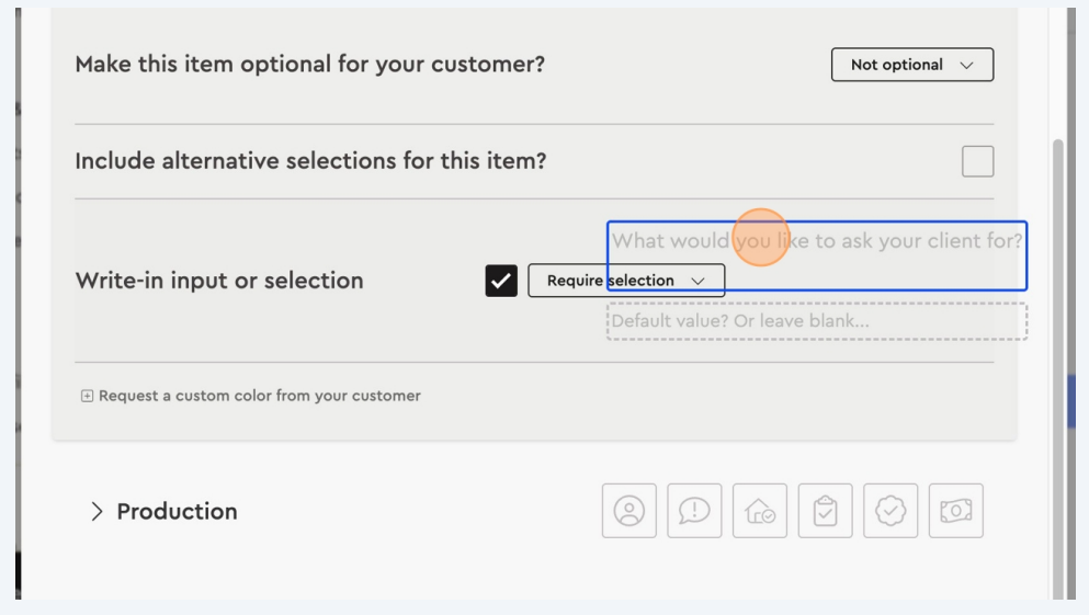 Click 'Request custom input or selection from your customer' to create a new input field or question.