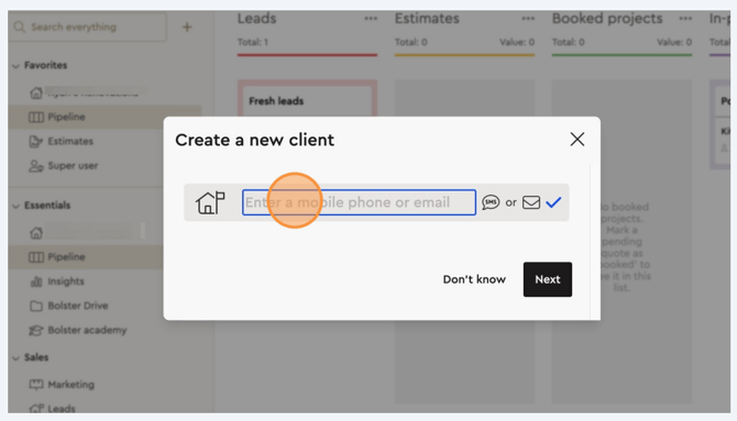 Creating a new client in Bolster is a straightforward process that is essential whenever a new individual requests a proposal. Follow these steps to add a new client to your pipeline: