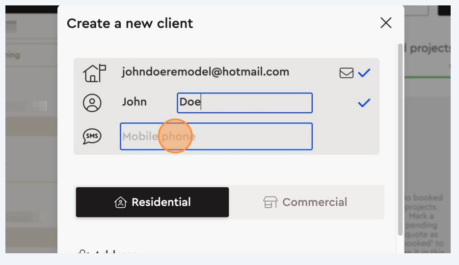 Add your new client/leads details and chose whether this is a residential or commercial client.