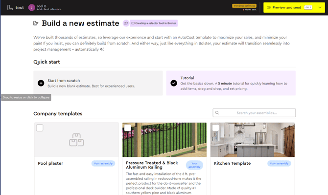 Creating a new estimate in Bolster is a straightforward process that can be completed in a few simple steps. Follow the instructions below to efficiently generate an estimate for your client.