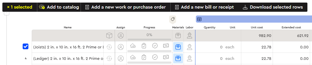 This article explains how to create purchase orders (POs) or work orders (WOs) directly from the Budget tab using the updated workflow. This process is designed for itemized budget items and supports both using estimate pricing and manually overriding costs when needed.