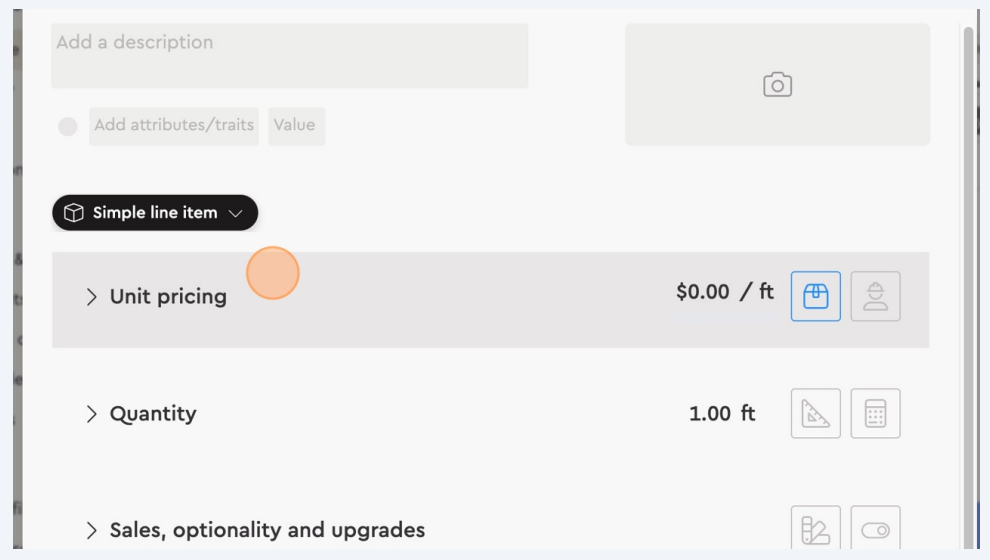Click the square on the item to open the unit pricing tab. This section allows you to enter the same information as above to keep your pricing consistent.