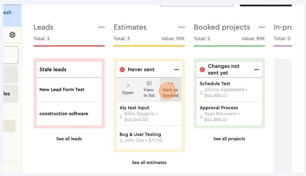 Use when: You have verbal/handshake approval and want to move an estimate into Booked Projects manually