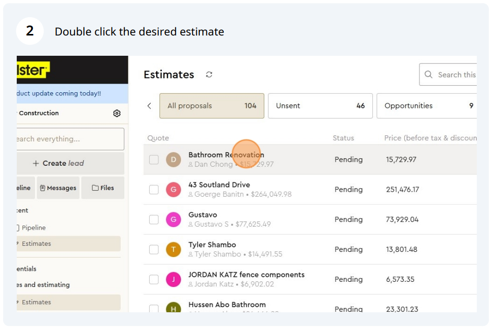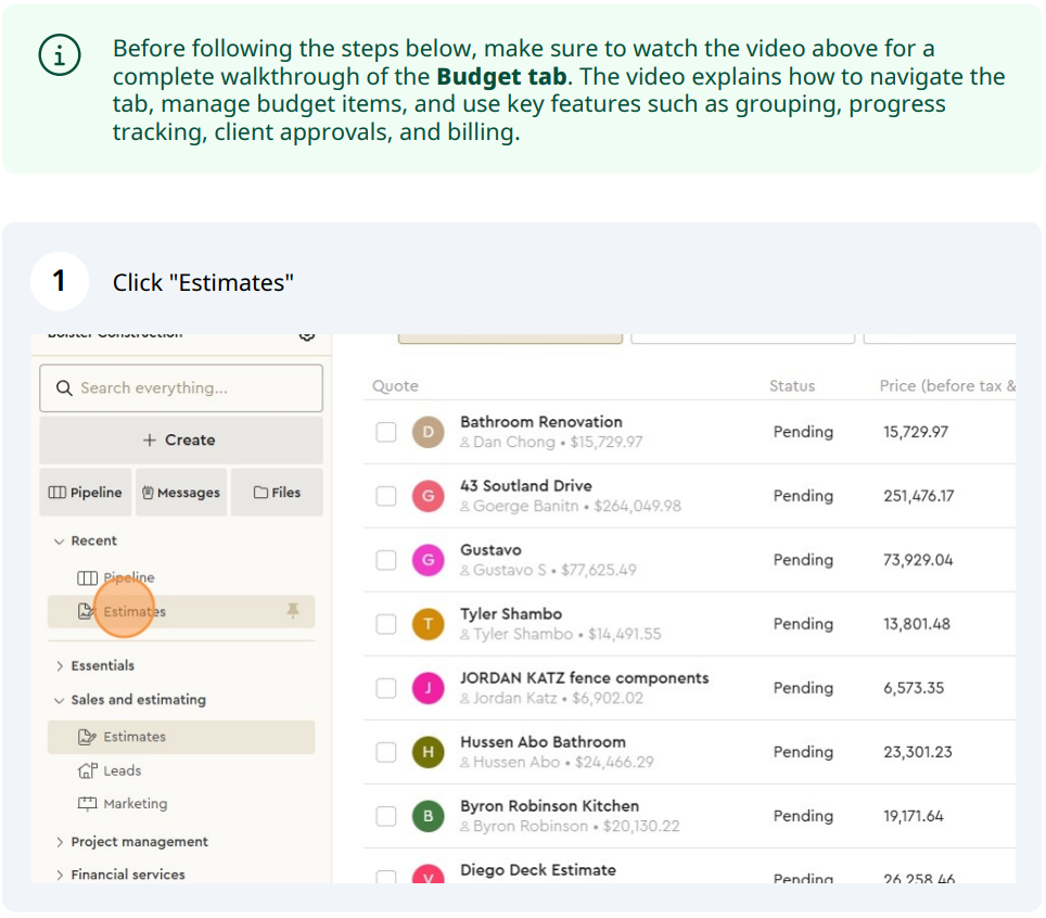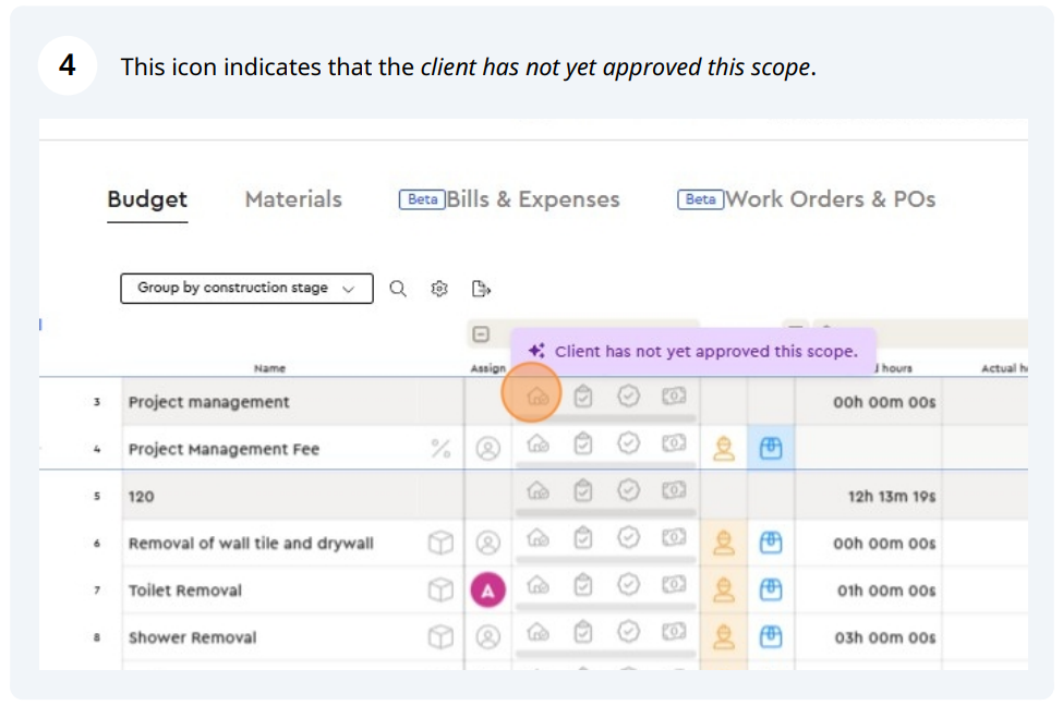 The overhauled Budget Tab provides a clearer, more detailed view of every aspect of your project’s financials. Each column plays a specific role in tracking and managing estimates, costs, payments, and profitability.