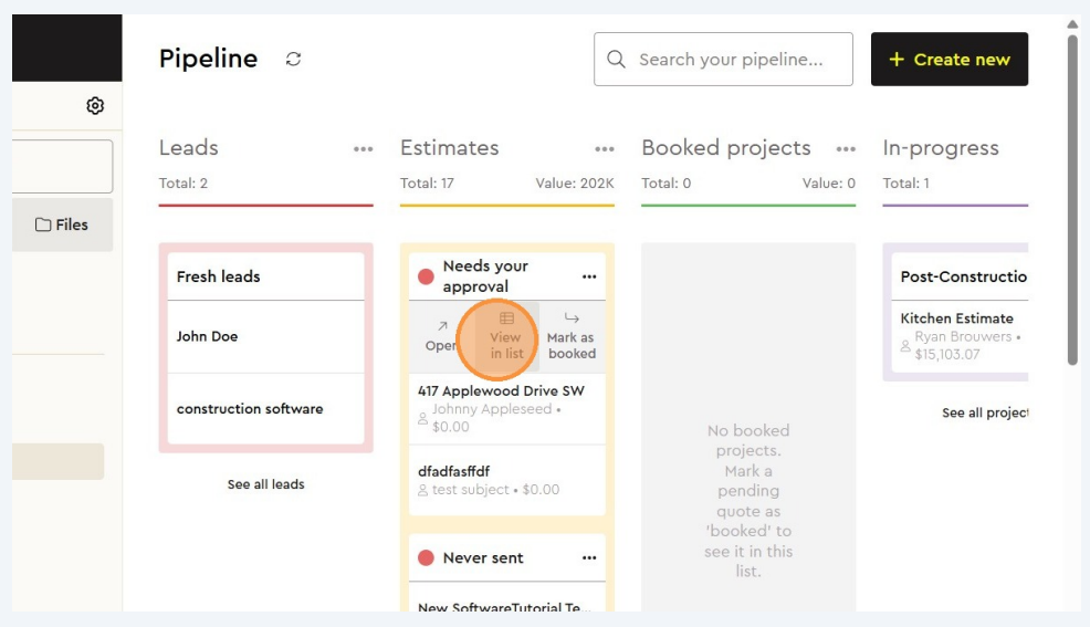 Welcome to your pipeline! Here you’ll find all leads, estimates, booked projects, and in-progress jobs.