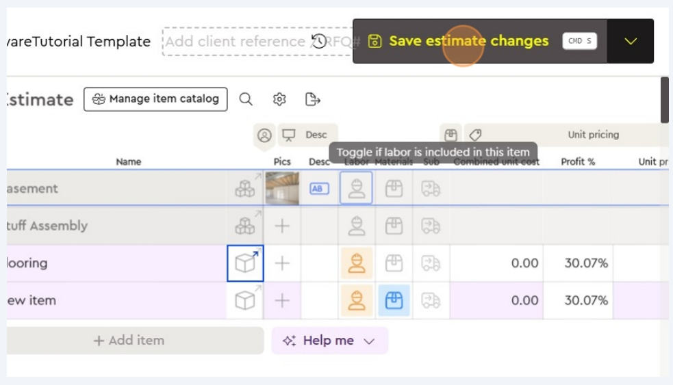 Once you've added all of the details you'd like to include with this item close this menu and "Save Estimate Changes"