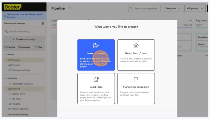 • Start every new project by creating an estimate for a new or existing customer.