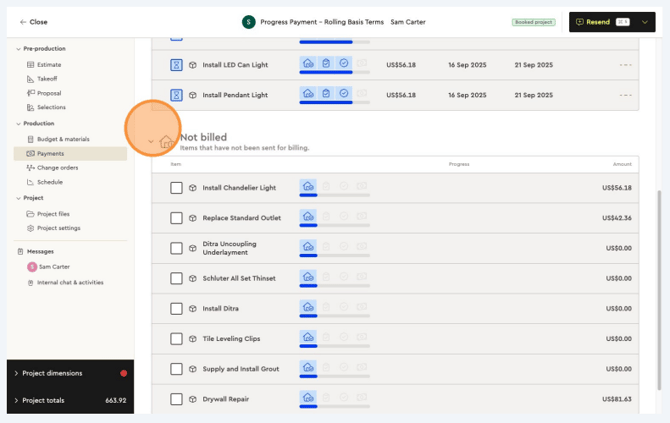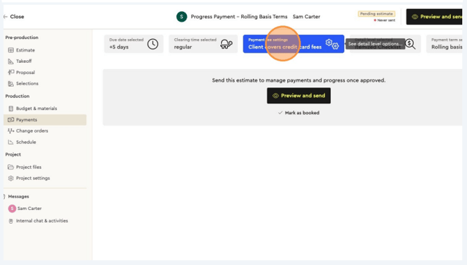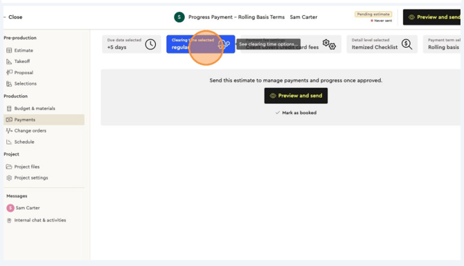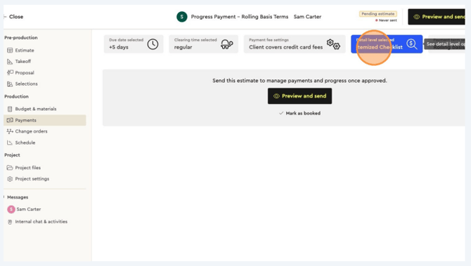 When your estimate is complete and you’re satisfied, click on Payments to set up this project’s payment terms.