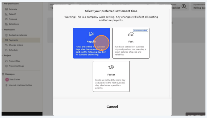 Choose how quickly you’d like the funds to settle into your Bolster Business Account: