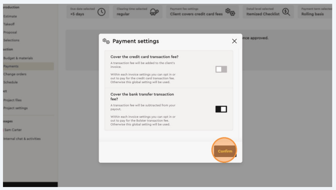Decide whether you’d like the client to cover credit card fees for this project, or if you’d prefer to cover them yourself & confirm.