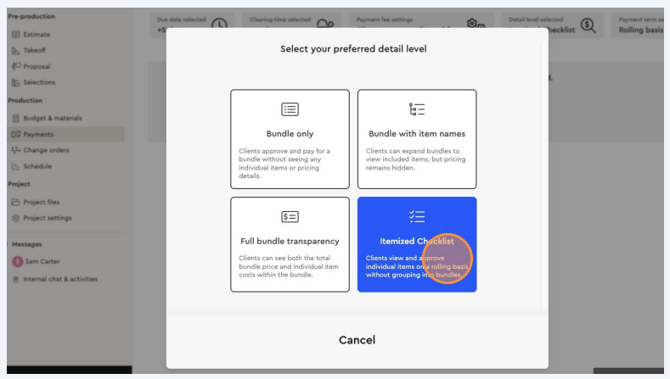 Choose the level of detail you’d like your client to see on their payment request: