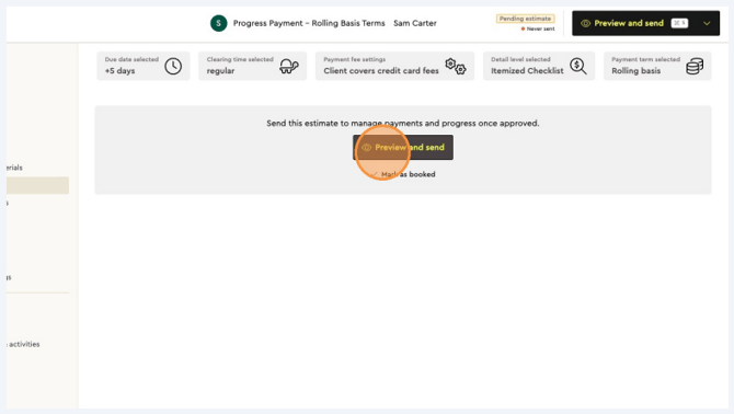 After setting up the project’s payment terms, you can preview the proposal as your client would see it, present it in person, or send it (via email & sms) for their approval.