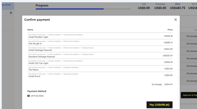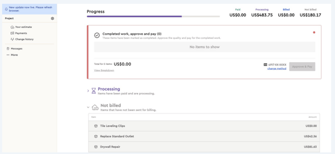 While the payment is being processed, you’ll receive a notification and can track its status on the job or on your Financial Services dashboard.