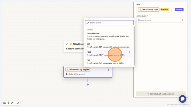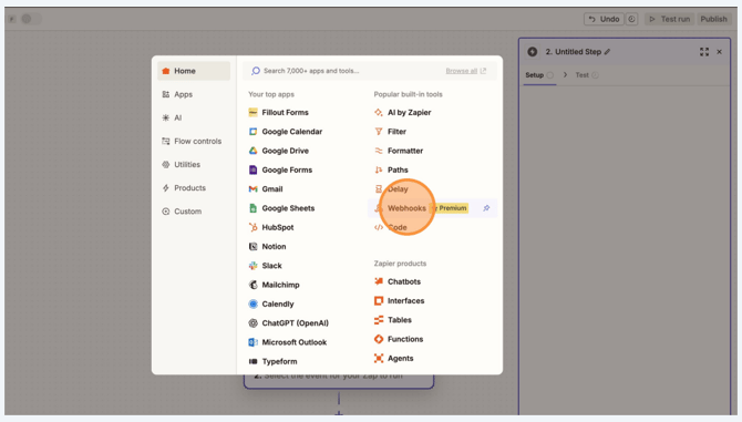 Find and select Webhooks by Zapier