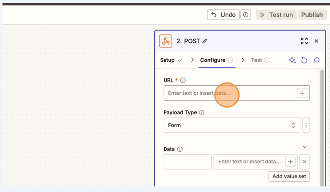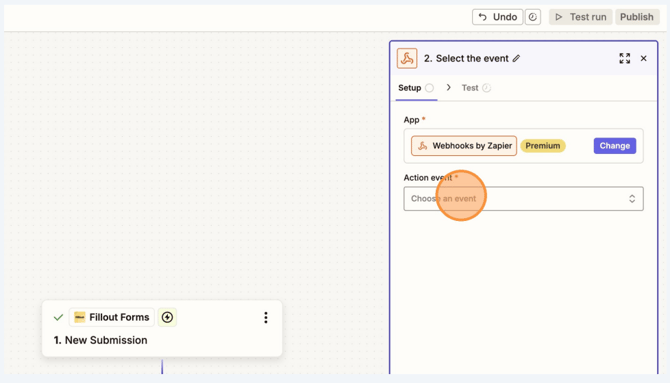 In Zapier, click Action