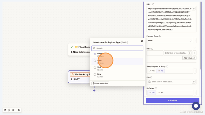 Click Payload Type then Select JSON