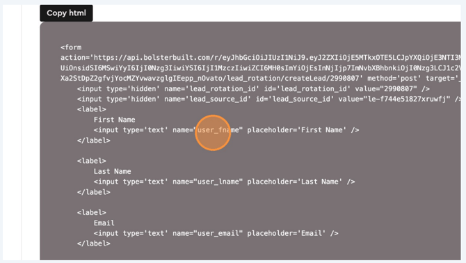 Find and select the corresponding input as outlined on your current lead form.