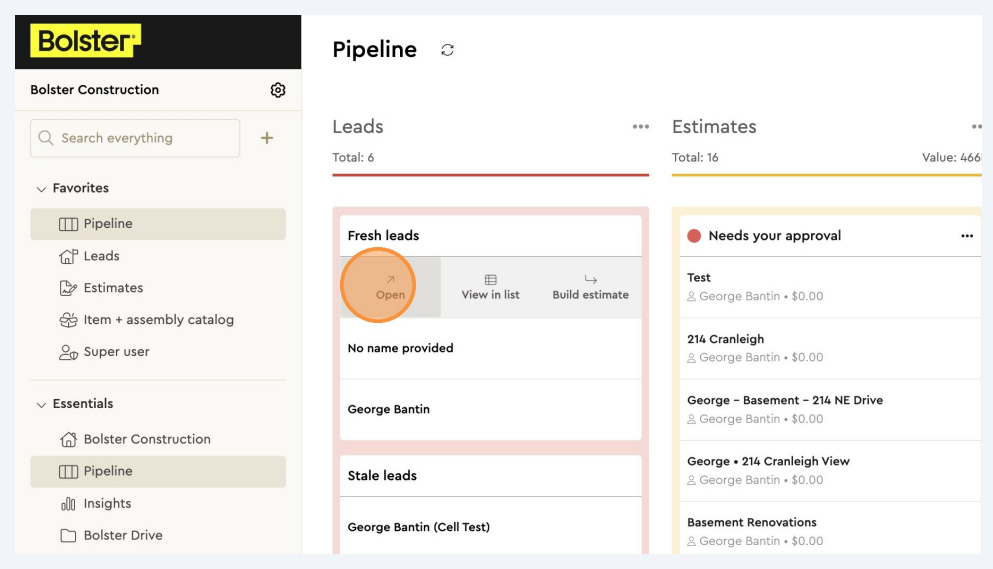 Switch to tab Bolster and see the new lead showing under the lead column within your pipeline.