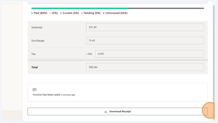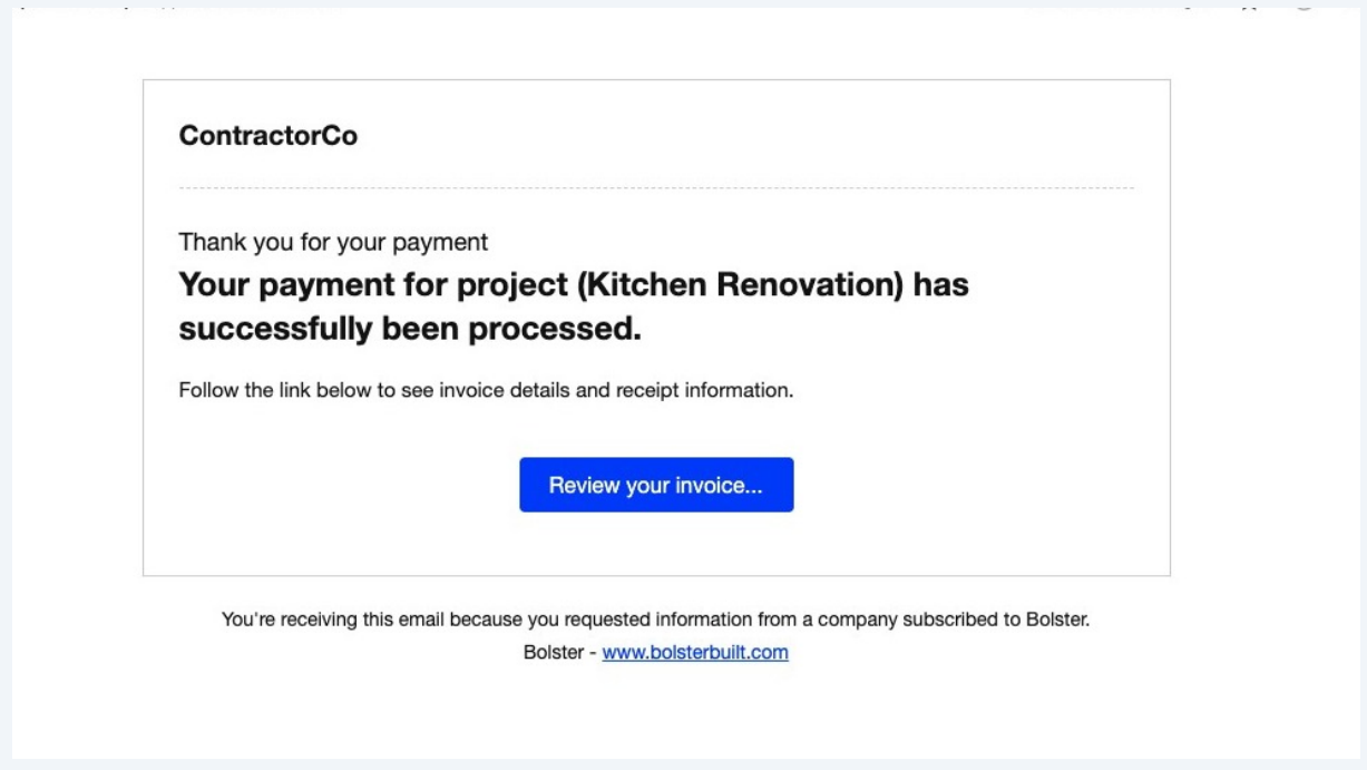 Once the client makes a payment, they will receive a notification confirming that their payment was successfully processed and that an invoice is available to view.